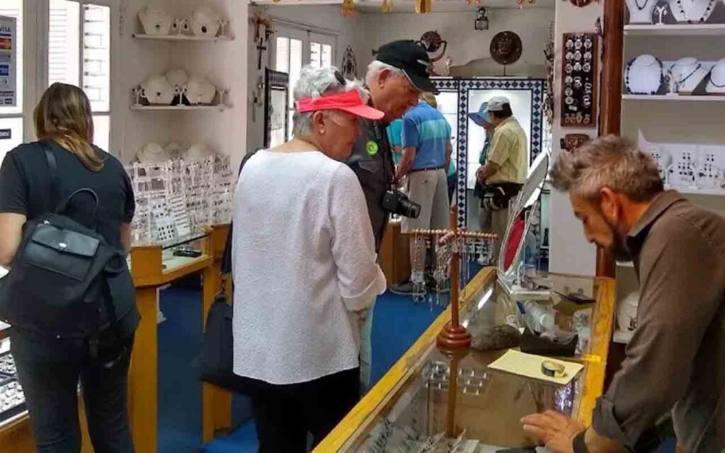 We start by visiting Bluestone, where you will be welcomed with a sampling of Chile’s national drink, pisco sour. Here you can browse jewelry and crafts made from Chile’s national stone, lapis lazuli, prized since antiquity for its intense blue color and found primarily only in Afghanistan and Chile. Here you will also find items made from Chile’s national mineral, copper.